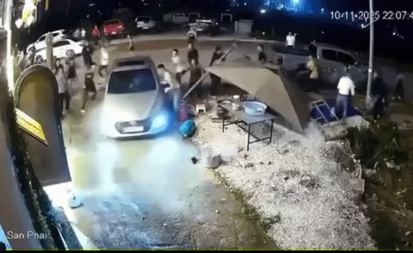 Hiện trường vụ ô tô bị nhóm người bao vây đánh trong đêm, bước đầu xác định nguyên nhân do mâu thuẫn cá nhân (Ảnh: Cắt từ clip).