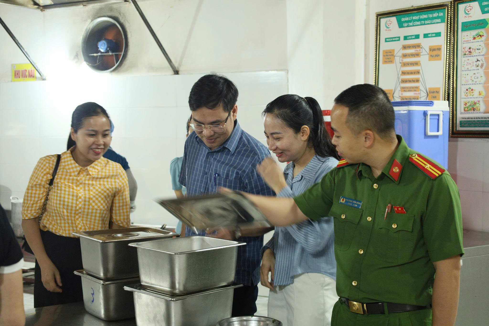 Tại công ty Cổ phần đầu tư và thương mại Đào Lượng có địa chỉ tại thôn Phú Nông, xã Vĩnh An, tỉnh Phú Thọ và các công ty, chủ hộ sản xuất kinh doanh phối hợp với Công ty này, Đoàn kiểm tra liên ngành của xã đã trực tiếp kiểm tra hồ sơ, sổ sách, dụng cụ chế biến,quá trình sơ chế, chế biến nguyên liệu thức ăn của các đơn vị để cung cấp nguyên liệu thực phẩm cho các bữa ăn bán trú cho học sinh các trường công lập trên địa bàn xã Cổ Đô.