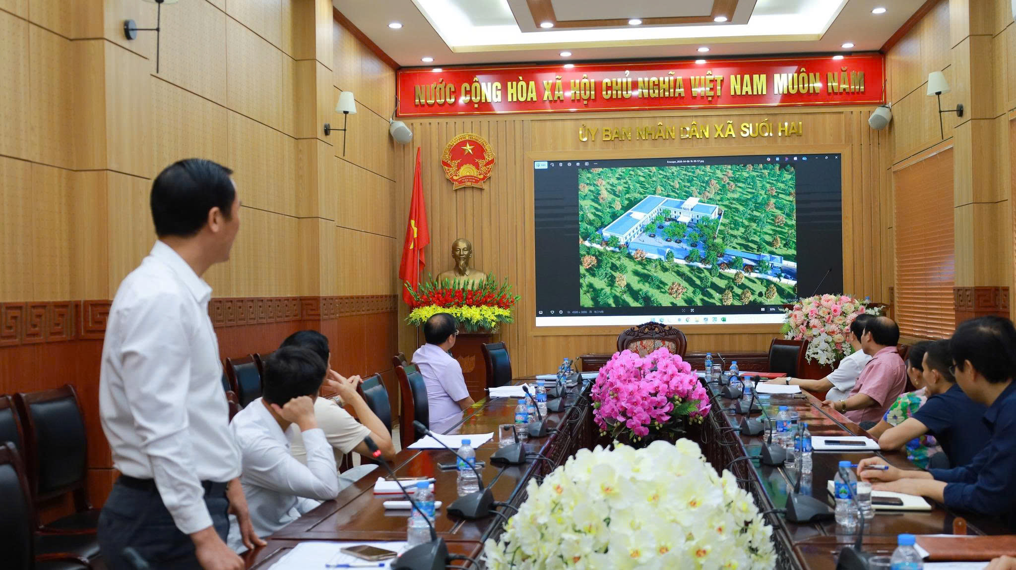 Chiều ngày 22/4/2026, UBND xã Suối Hai tổ chức hội nghị trình chiếu, thống nhất phương án thiết kế đối với 2 dự án quan trọng trên địa bàn, gồm: Dự án cải tạo, sửa chữa nhà làm việc và mua sắm trang thiết bị Trạm y tế xã Suối Hai; Dự án tu bổ, tôn tạo di tích Đền Đá Đen.