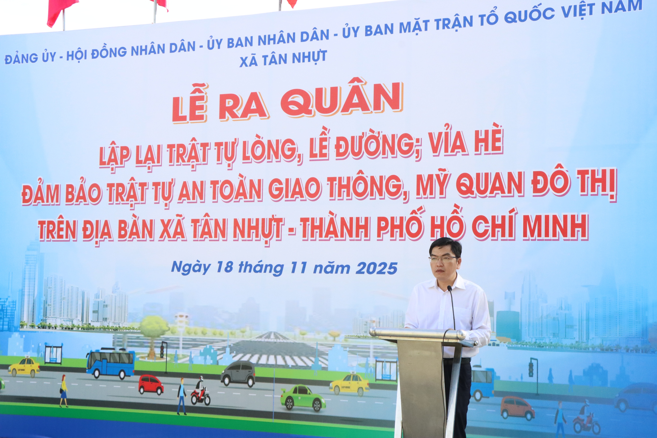 Sau buổi lễ, đoàn xe Công an xã, lực lượng CSGT, xe loa tuyên truyền, cùng các đội hình ấp, đoàn viên thanh niên đã ra quân diễu hành trên các tuyến đường chính, đồng thời tuyên truyền, nhắc nhở người dân tuân thủ quy định trật tự đô thị, góp phần xây dựng xã Tân Nhựt văn minh, hiện đại và an toàn giao thông.