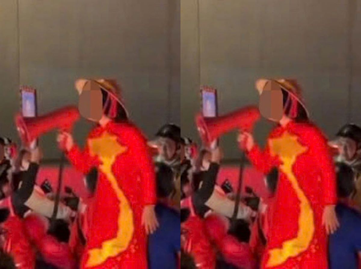 Sáng 17/1, mạng xã hội xôn xao đoạn clip ghi lại cảnh một người phụ nữ mặc áo dài đỏ, đội nón lá, tay cầm loa, đứng trên yên xe máy rồi hô hào nhiều người tham gia giao thông phía sau cùng đua xe.