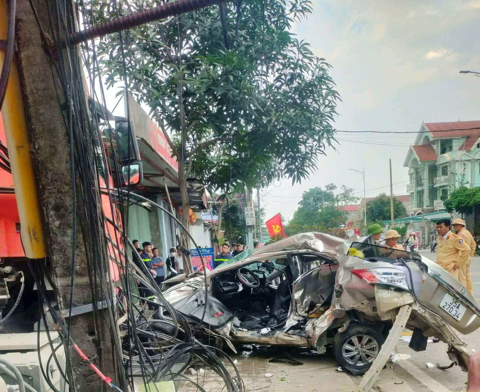 Hậu quả khiến một người đàn ông tên T. (trú xã Nho Quan) ngồi bên đường tử vong. 2 người ngồi trên xe ô tô con bị thương, mắc kẹt trong xe. Người dân đã dùng xà beng, kìm phá cửa xe ô tô con đưa 2 người ra ngoài đi cấp cứu.
