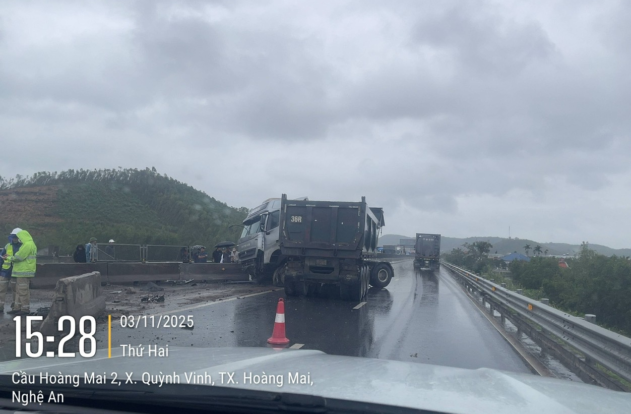 Vụ tai nạn xảy ra vào khoảng 14h45 ngày 3/11, trên tuyến cao tốc Bắc – Nam, đoạn qua địa phận phường Hoàng Mai, tỉnh Nghệ An.