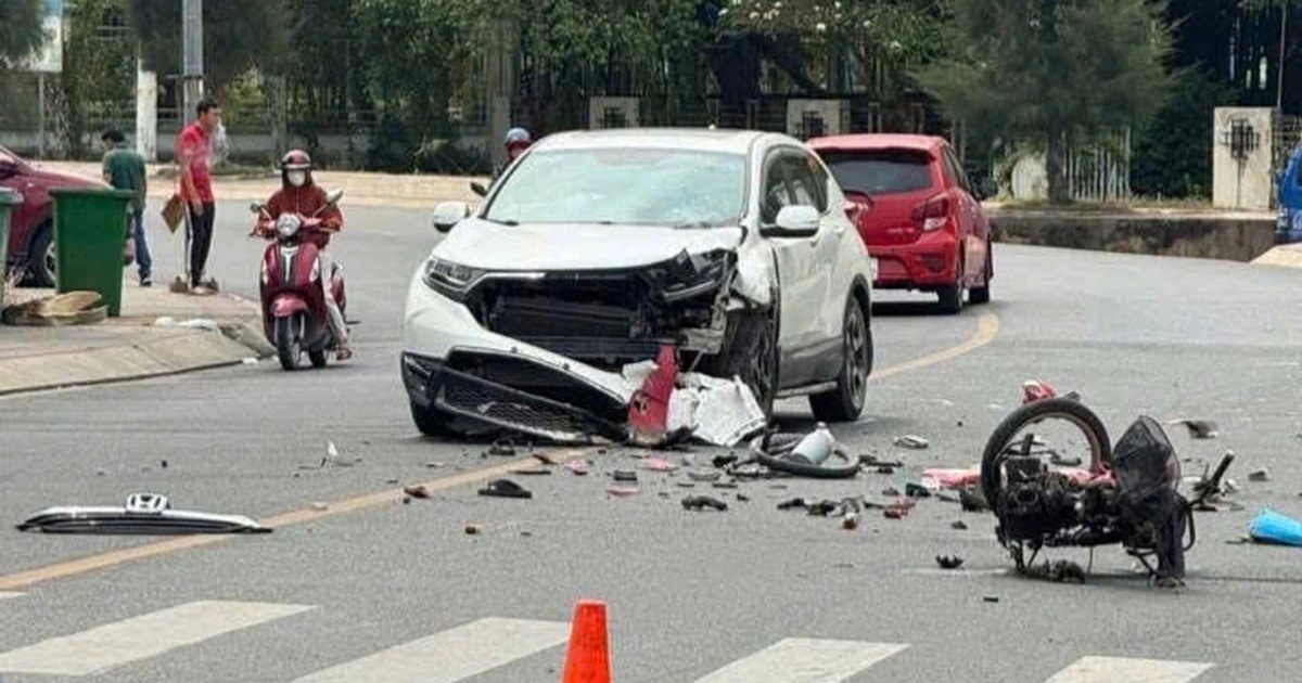 Cú đối đầu khiến xe máy bị rụng bánh trước, nam thanh niên ngã ra đường, tử vong tại chỗ. Ghi nhận tại hiện trường, xe máy và ô tô bị hư hỏng nặng. Ô tô dừng trên cả hai làn đường có vạch liền tại đoạn đường có khúc cua.