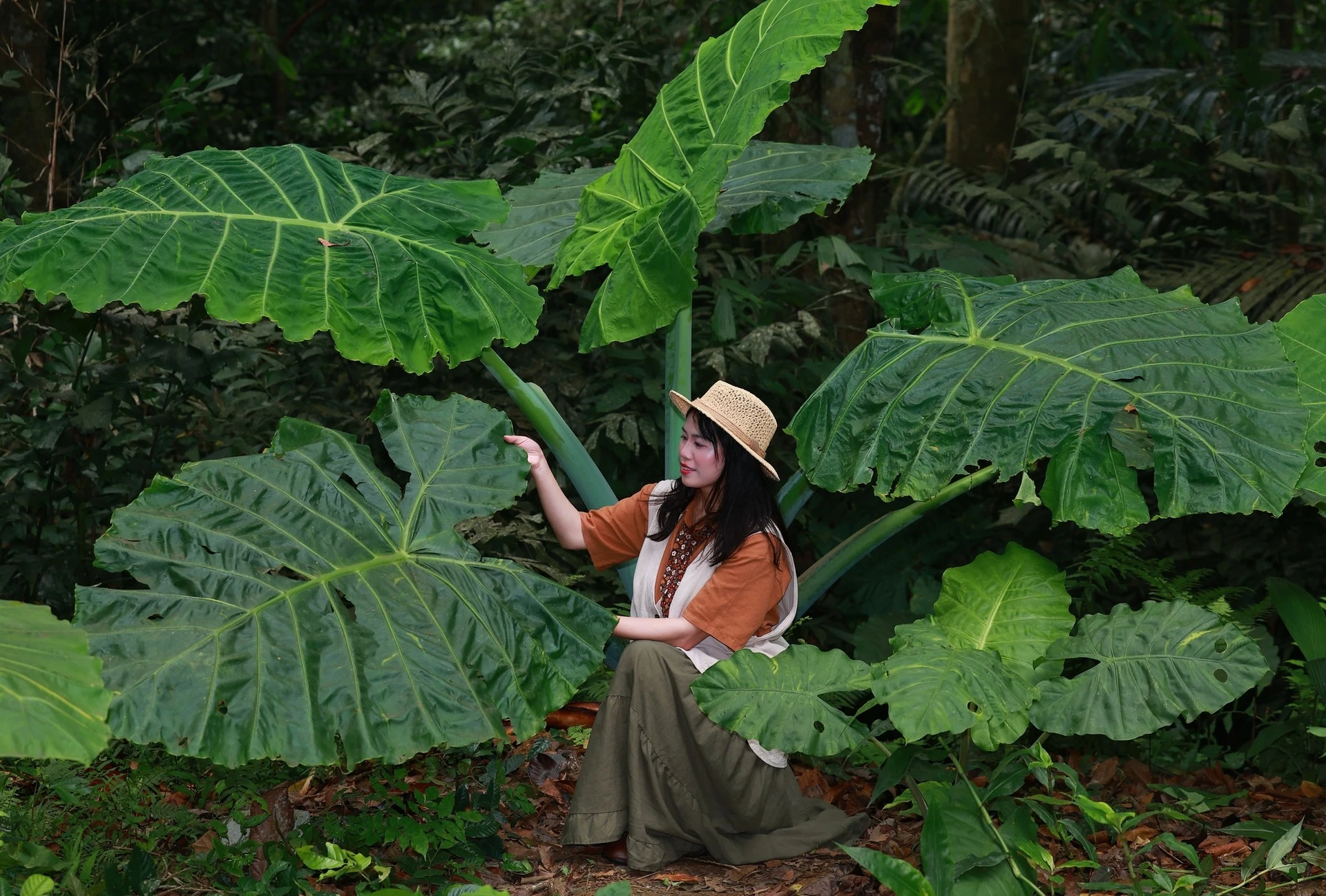 Bụi ráy khổng lồ đang là tọa độ check-in hot không kém trào lưu “săn bướm” ở VQG Cúc Phương dịp đầu tháng 4. Ảnh: Yến Lê. |