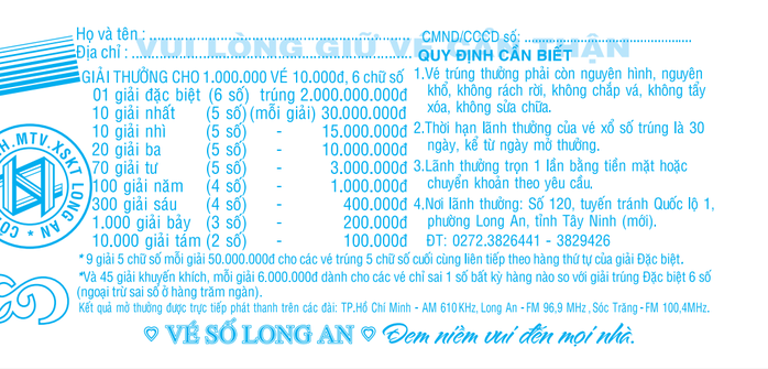 Chiều 11-10, tin từ Công ty TNHH MTV Xổ số kiến thiết Long An cho biết giải đặc biệt (dãy số 213235 ) kỳ vé 10K1, mở thưởng ngày 4-10 đã xác định được khách hàng trúng thưởng 14 tờ tại tỉnh Tây Ninh.