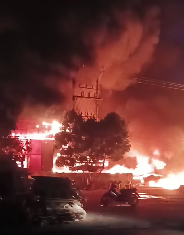 Do bên trong xưởng chứa nhiều vật liệu dễ cháy nên ngọn lửa lan nhanh và bùng phát dữ dội.