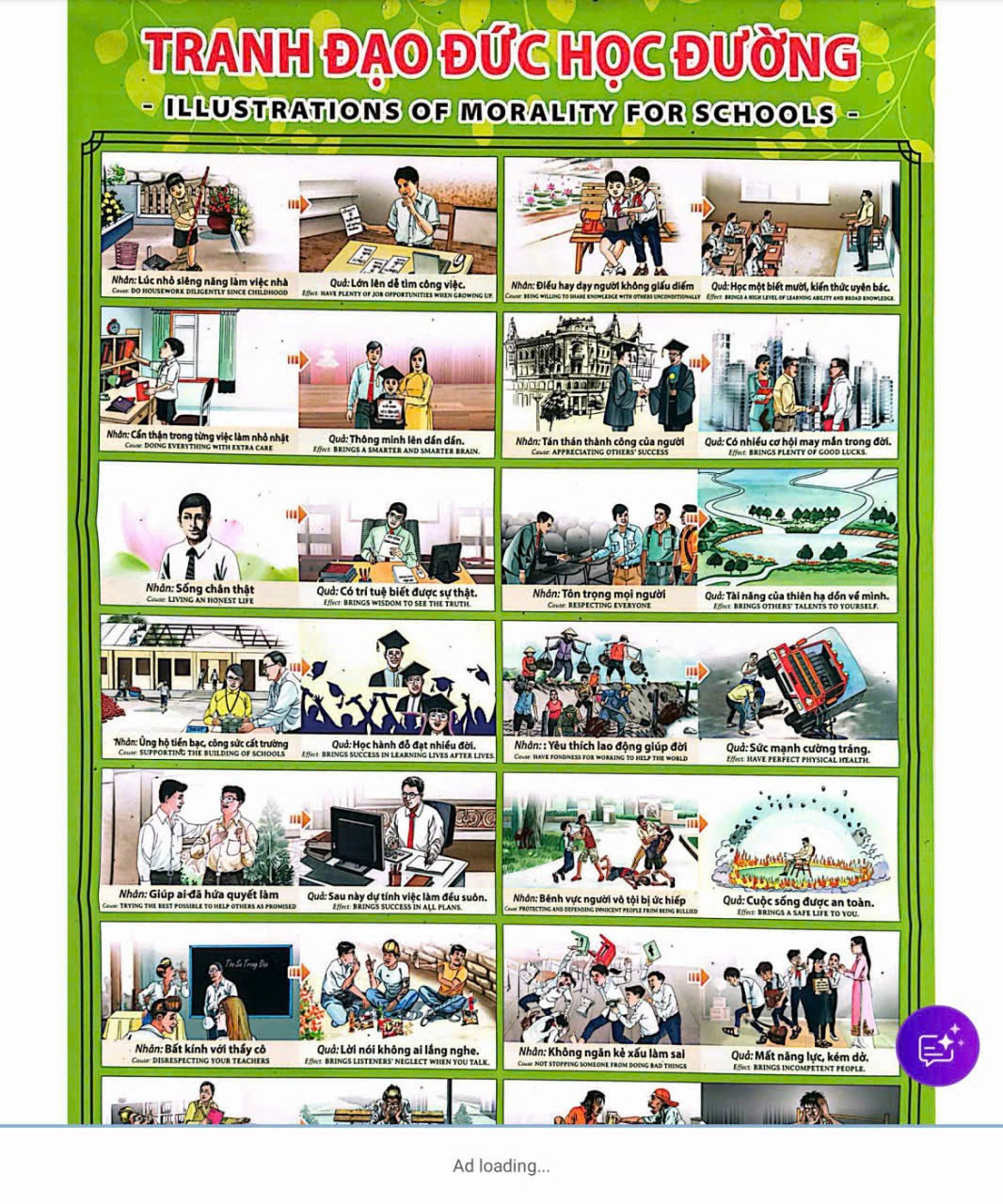 Một số câu nhân – quả trong tranh đạo đức học đường được treo ở trường: